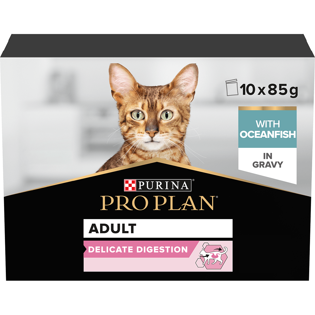 Pro Plan Cat Nutrisavour Adult Delicate Digestion With Ocean Fish In Gravy Wet Food Pouch 10X85G