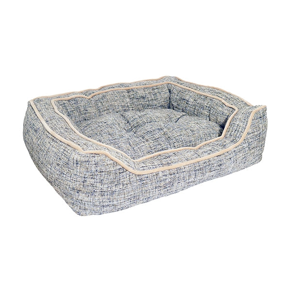 Luxury Slate and Oatmeal Square Sleeper combines style with comfort. Its outer is made from a luxurious canvas material. Reversible cushion: one side teddy bear fleece the other canvas. Stylish oatmeal piping. Machine washable at 30 degrees.