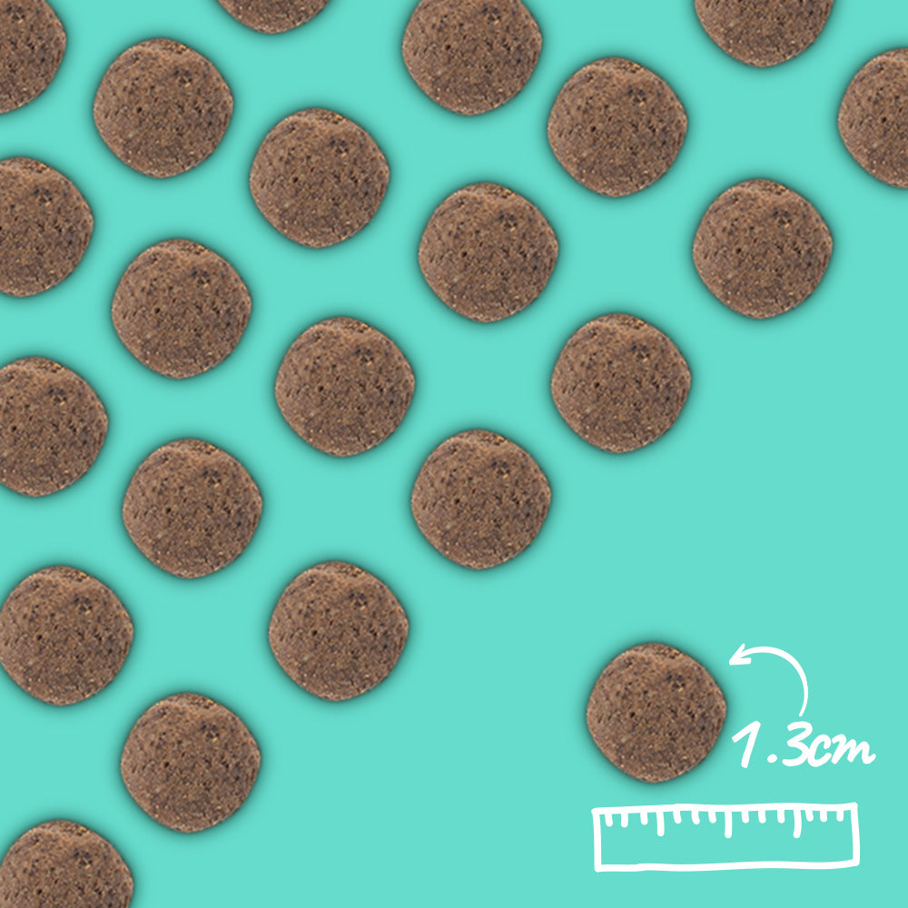 Analytical constituents: Crude protein 26%, crude fat 15%, crude ash 8%, crude fibre 3%, omega-6 fatty acids 3.5%, omega-3 fatty acids 1%, linoleic acid 3%, DHA*/EPA** 0.3%, calcium 1.1%, phosphorus 1%, potassium 0.6%, sodium 0.3%. Metabolisable energy 376kcals/100g. *Docosahexaenoic acid, **Eicosapentaenoic acid.