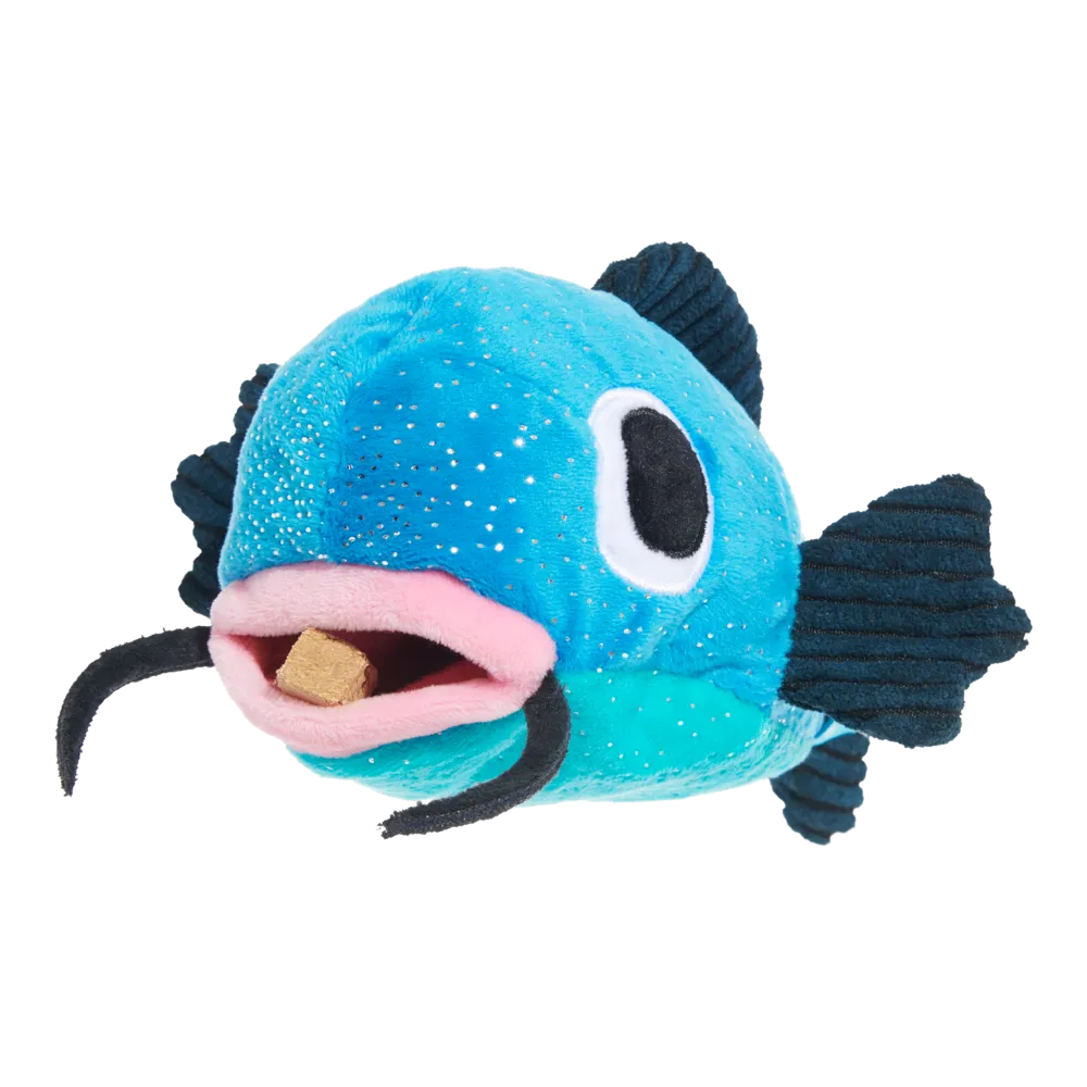 Catfish Claude is one of the wildest creatures from the Louisiana barkwaters—get too close, and you’re in for a whisky situation! This catfish dog toy is not only stuffed with crazy crinkle and squeaks—your pup can also grip and whip his fins for a swimmingly satisfying thrash session. Hide treats in his mouth for a tasty way to play! FEATURES: BARK Catfish Claude catfish fish blue plush dog toy Hide treats inside the pocket for a tasty way to play. Crazy crinkle for a bite you can hear. Made with a squeaker for extra excitement. Hide treats inside the pocket for a tasty way to play.