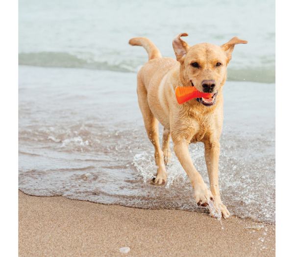 DURABLE AND SAFE PLAY: The BIONIC Bone offers texture and mouth feel that dogs love. Patented defensive geometry deflects incoming bite and chew forces for increased durability. It can bounce and float, making it great for fetch and outdoor play.