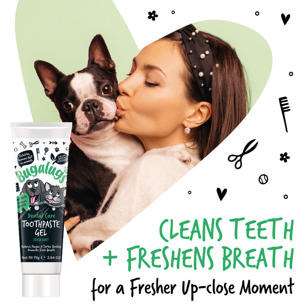 Bugalugs Dental Care Toothpaste Gel is made with natural ingredients that freshen breath quickly, help reduce plaque and tartar build-up and cleans teeth. Used regularly and alongside our Bugalugs dog & cat teeth cleaning products, our dog toothbrush and toothpaste and cat toothbrush and toothpaste act as a dog breath treatment and as a plaque remover for dogs and cats helping to avoid future expensive vet trips!