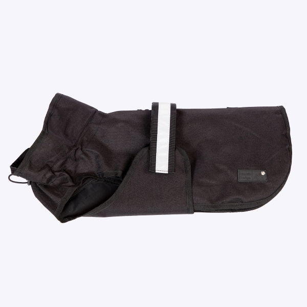 As all dogs are different shapes and sizes we recommend that you measure your dog to make sure that this new coat fits well. Take a measure from the nape of the neck to the base of the tail and this should be a guide for the size you need. The funnel neck on the 3-in-1 Dog Coat is designed to give greater flexibility in size and can sit higher or lower on your dog’s neck to achieve the best fit overall. This dog coat should be worn under supervision and the velcro straps should be fastened snug to keep the coat in place, but not too tight to cause rubbing.