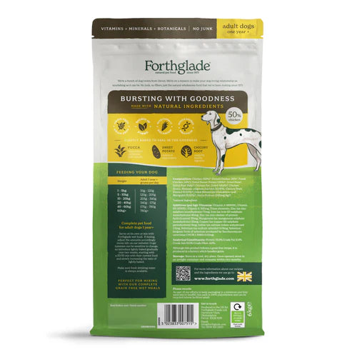Chicken (50%)* (Dried Chicken 26%, Fresh Chicken 24%), Dried Sweet Potato (26%), Dried Peas, Dried Beet Pulp*, Chicken Fat, Dried Alfalfa*, Chicken Gravy, Mannan- oligosaccharides (0.05%), Chicory Root Extract (0.05%), Dried Botanicals (Dandelion Leaf, Marigold) (0.03%), Yucca Extract (200mg/kg)*. *natural ingredient