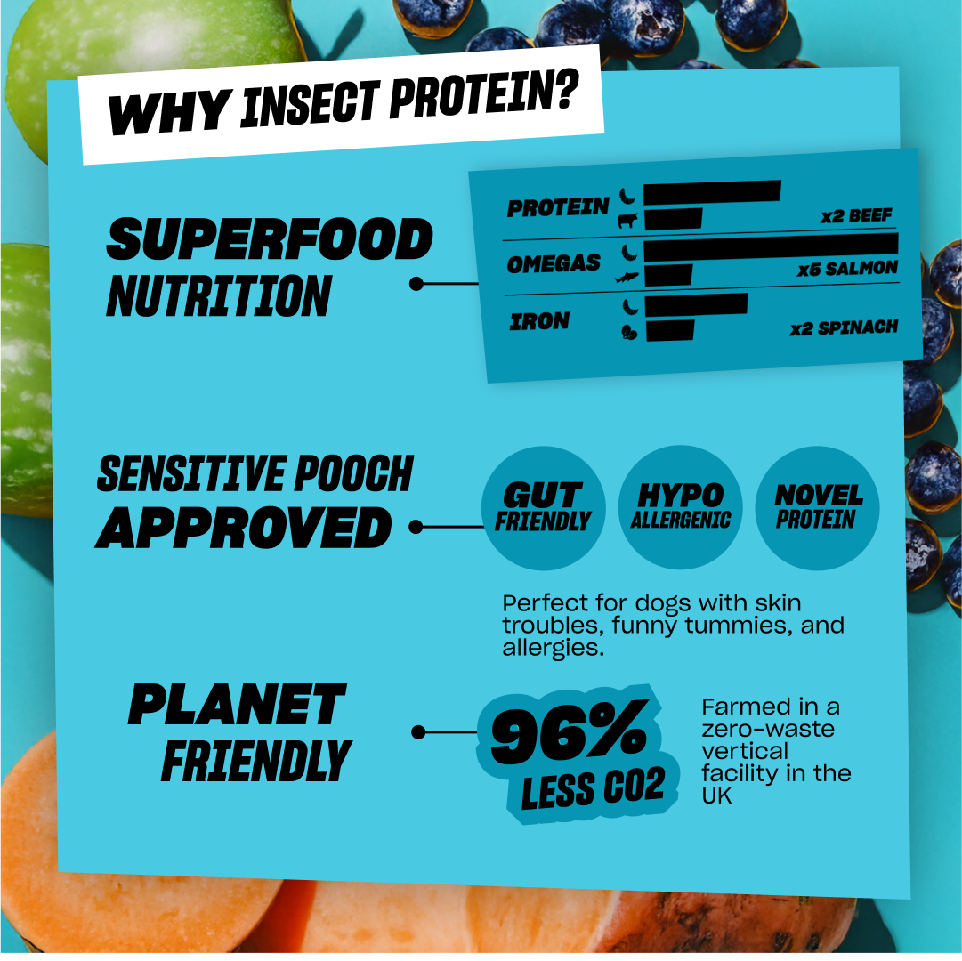 VET APPROVED: Our dog food is vetted by vets and has been developed by some of the world’s leading animal nutritionists. Insect protein is recognised by the British Veterinary Association for its environmental and health benefits.