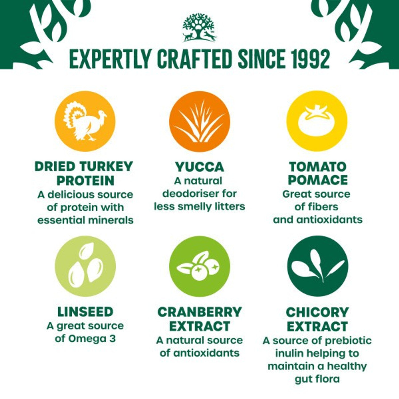 Crafted with nature's nourishing ingredients and combined with flavourful turkey to create highly digestible, tasty dry adult cat food. Our Grain Free food provides all the nutrients your cat needs and is easy to digest for cats with grain sensitivities. Best of all, you can be sure theyre enjoying a delicious, balanced diet.