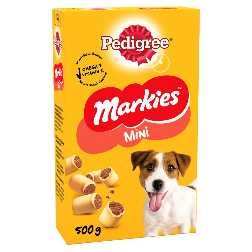 Markies tasty dog biscuits are available in different flavours, in Standard size and in Minis. Help keep your dog exuberant with Markies dog treats; part of the Pedigree dog treats range.