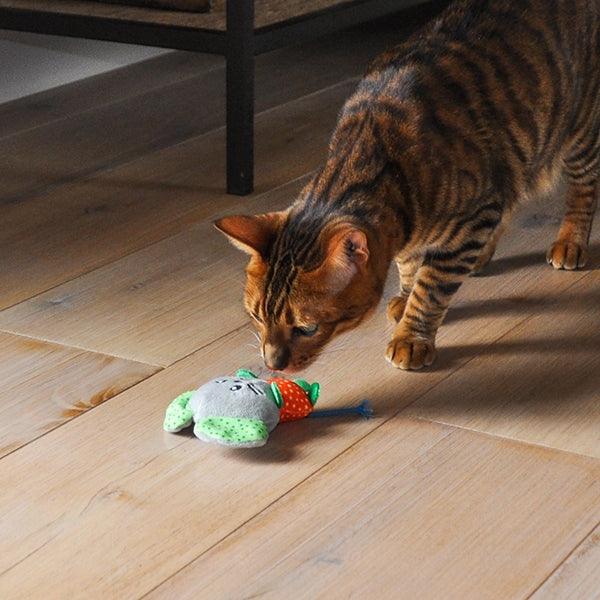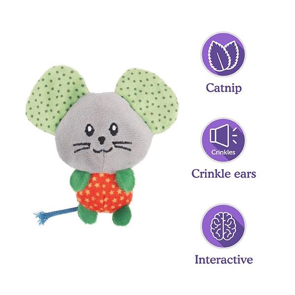 Made from Super soft plush, this cat toy is perfect for comforting snuggles as well as active play time! Crinkle ears to spark your cats interest. Packed with catnip to kick start your cats natural batting, pouncing and chasing instincts. Great for both interactive and solo play!