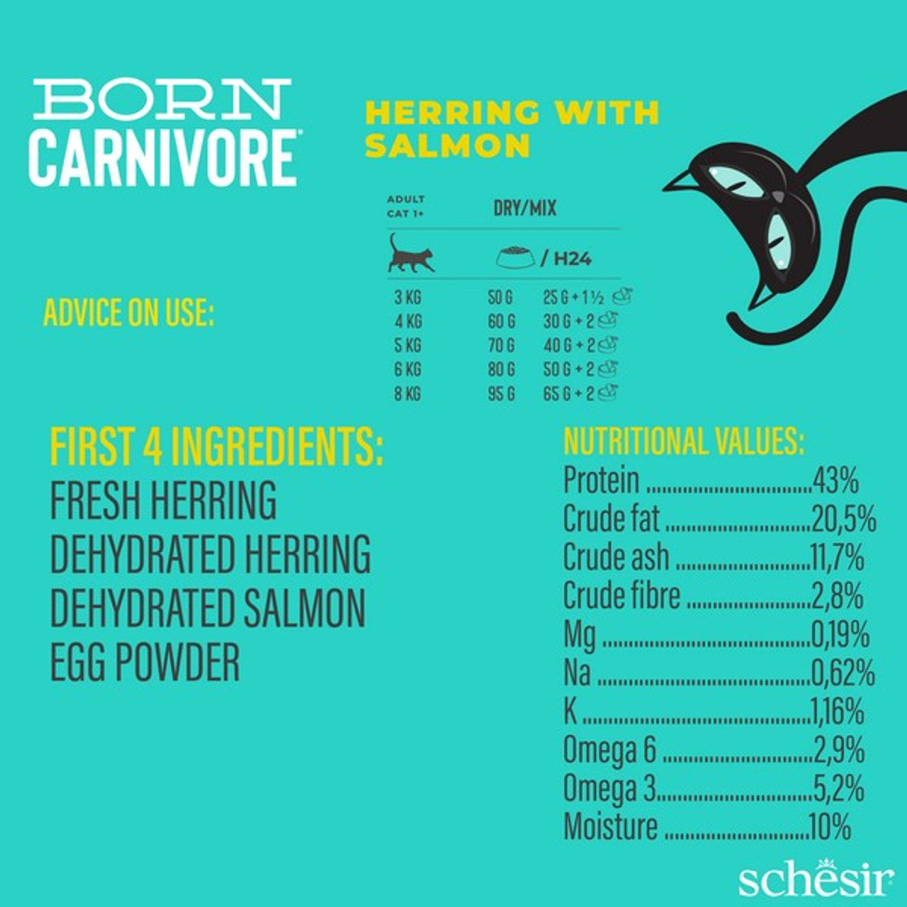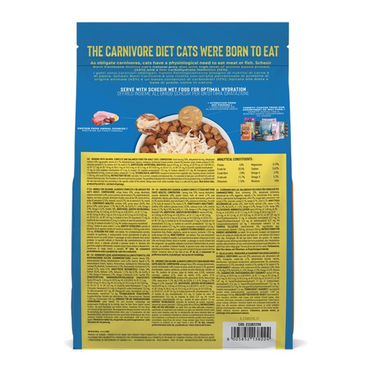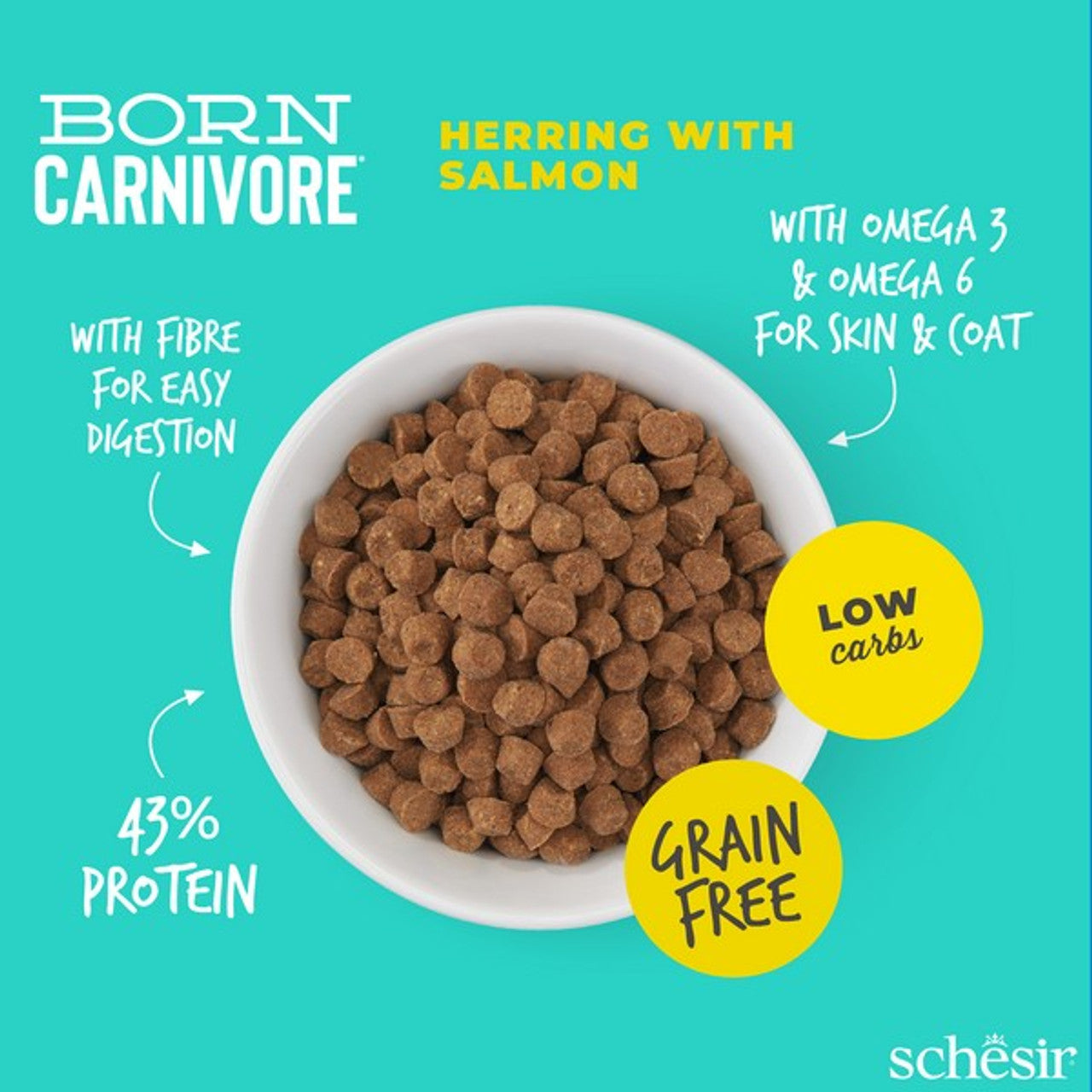 Schesir Born Carnivore Oven Baked Kibbles for Maximum Nutrition! Herring & Salmon Recipe with High Protein, Low Carbs, Fibres & Omega 3&6. Grain Free