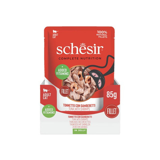 Schesir Tuna with Shrimps In Jelly Pouch Complete and Balanced 85g x 12