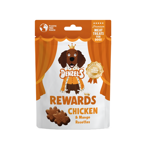 Made with freshly prepared 100% human-grade ingredients, gently air-dried in Ireland with nothing artificial added whatsoever. Denzel's Chicken and Mango Rosettes are made with 70% freshly prepared human-grade chicken, potato, carrot, and mango. With approximately 14 large Rosettes per pack they are perfect for dogs of all shapes and sizes from 16 weeks old.