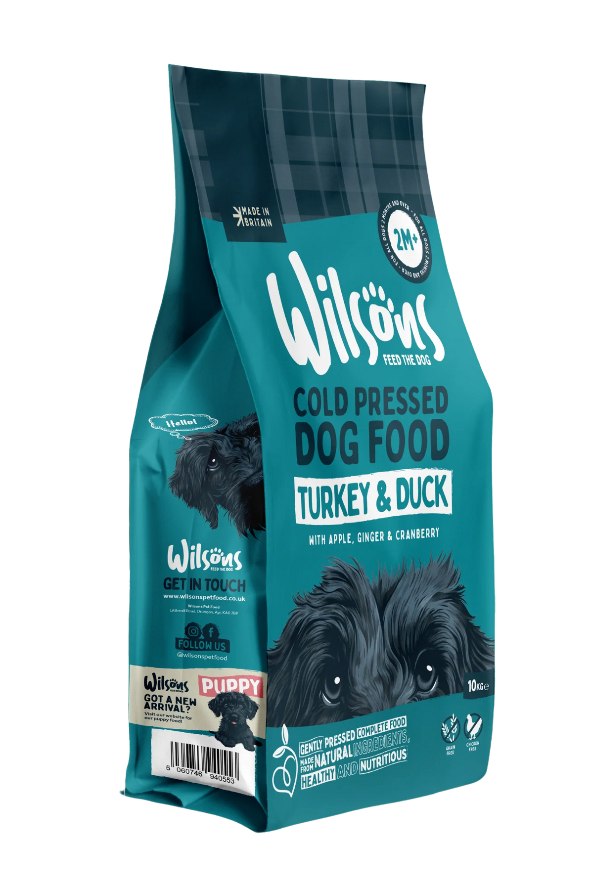 This is award winning Wilsons Cold Pressed. A nutritionally complete dry food, handmade in Scotland using only the very best natural ingredients. Our huge range ensures fussy pup requirements are met, including grain free and chicken free options.