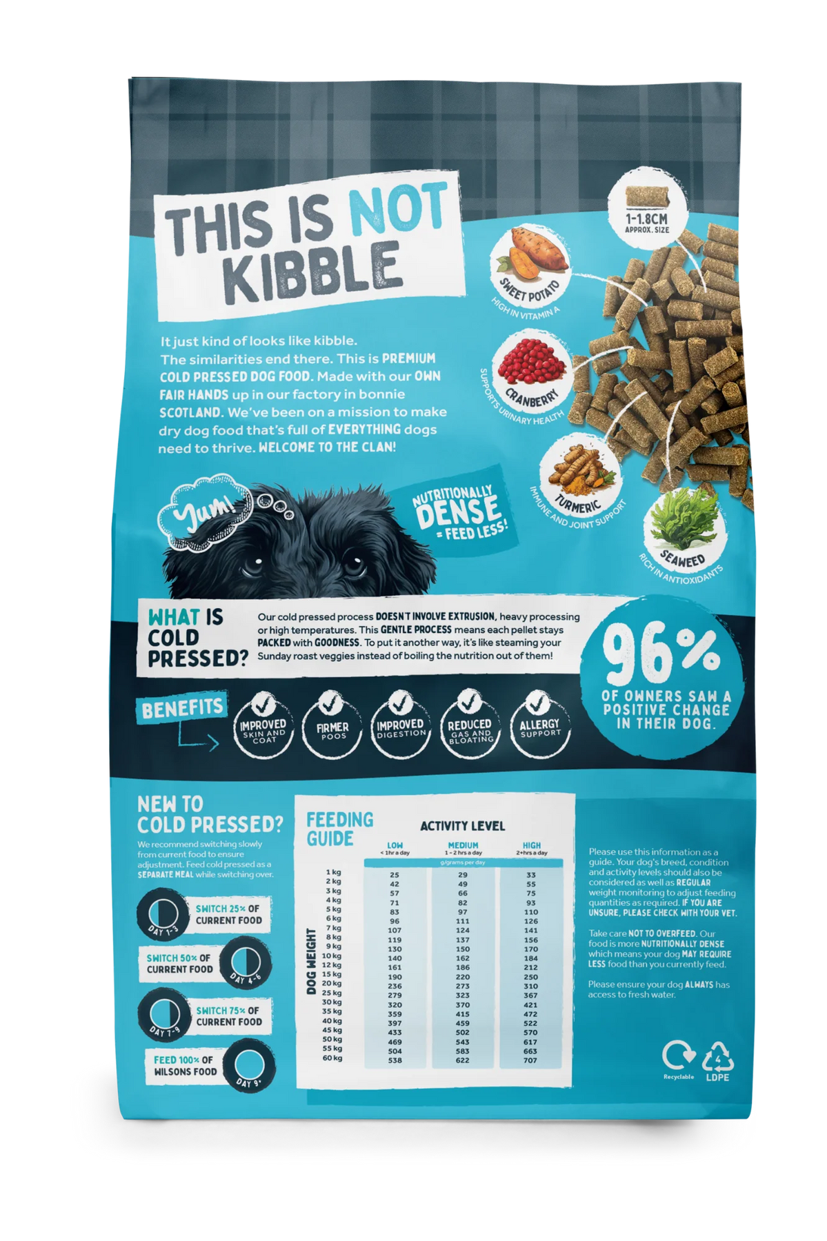 This is award winning Wilsons Cold Pressed. A nutritionally complete dry food, handmade in Scotland using only the very best natural ingredients. Our huge range ensures fussy pup requirements are met, including grain free and chicken free options.