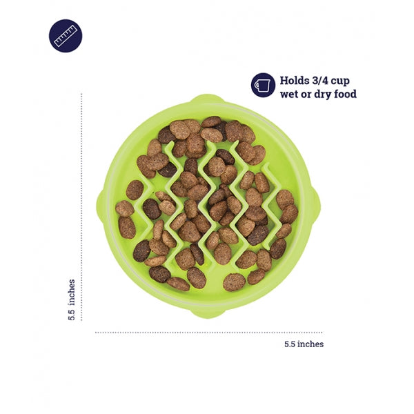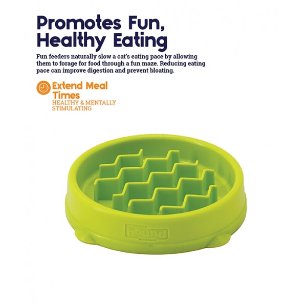 PROMOTES FUN, HEALTHY EATING: naturally slows cats' eating pace by allowing cats to forage for their food through a fun maze. IMPROVES DIGESTION: reducing eating pace can improve digestion and prevent bloating. BPA, PVC & PHTHALATE FREE: Made with food safe materials that you can trust with your kitty. NON SLIP BASE AND EASY TO CLEAN: Cat Fun Feeders are top rack dishwasher safe, and feature a slip resistant base to keep the bowl securely in place while your kitty chows down. PROPER PORTION: Cat Fun Feeder holds up to 3/4 cup of wet or dry food.