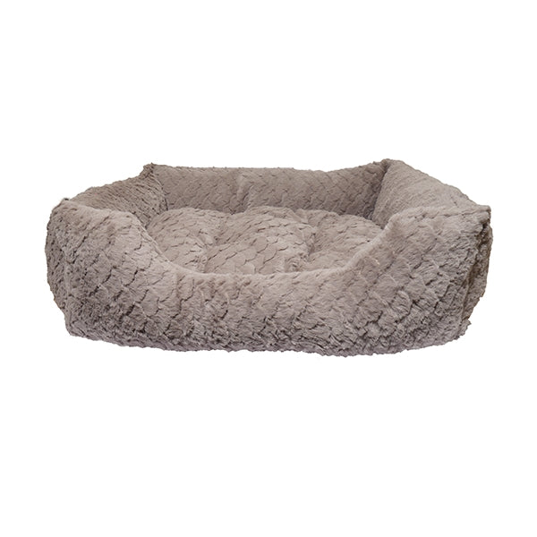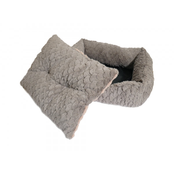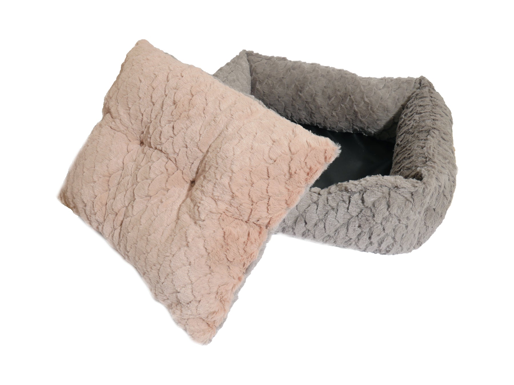 Plush centre cushion and sides creates comfortable resting place for the pet to relax. Reversible inner cushion (pink/grey). Tough stitching gives bed durability assisted by non-slip base. Machine washable at 30 degrees.