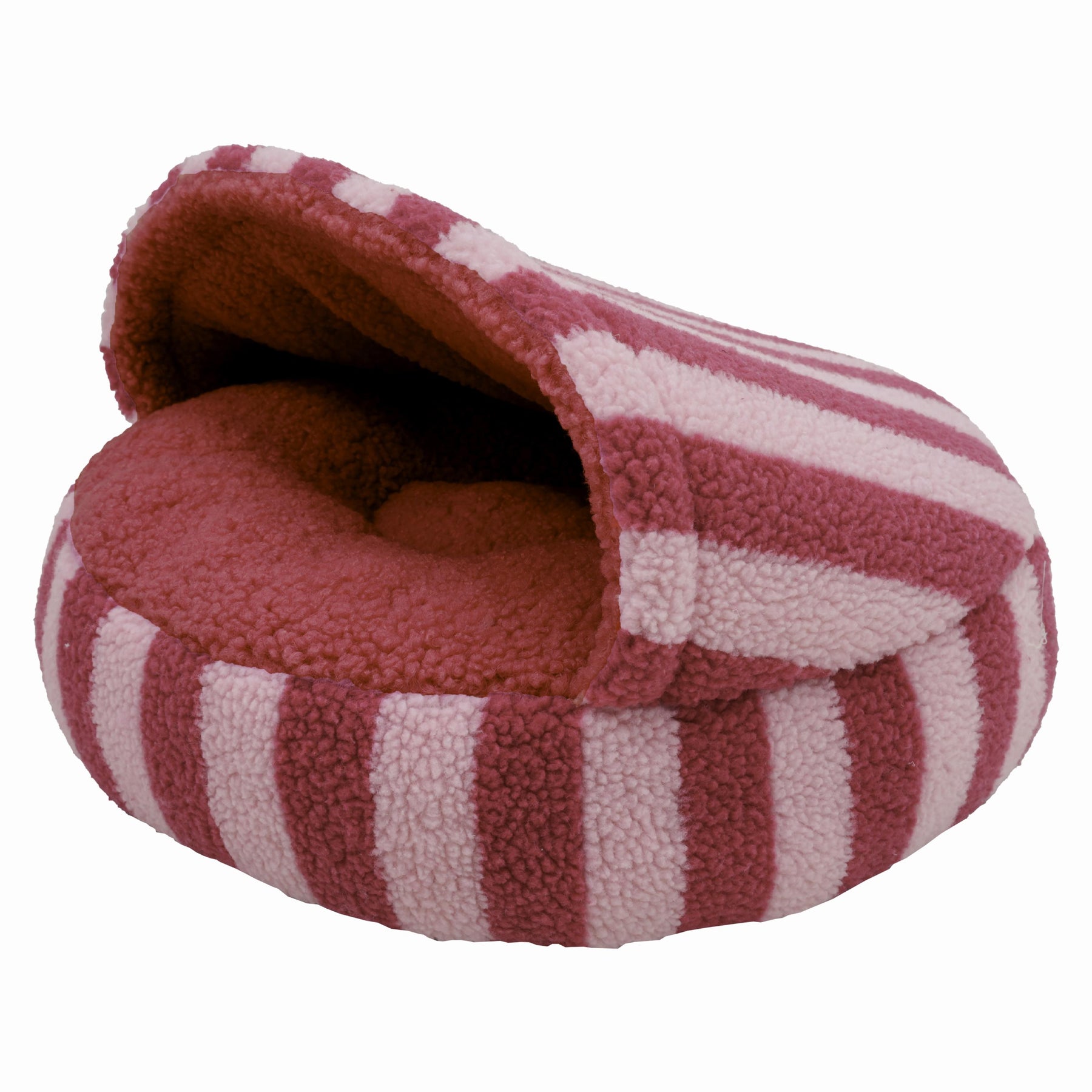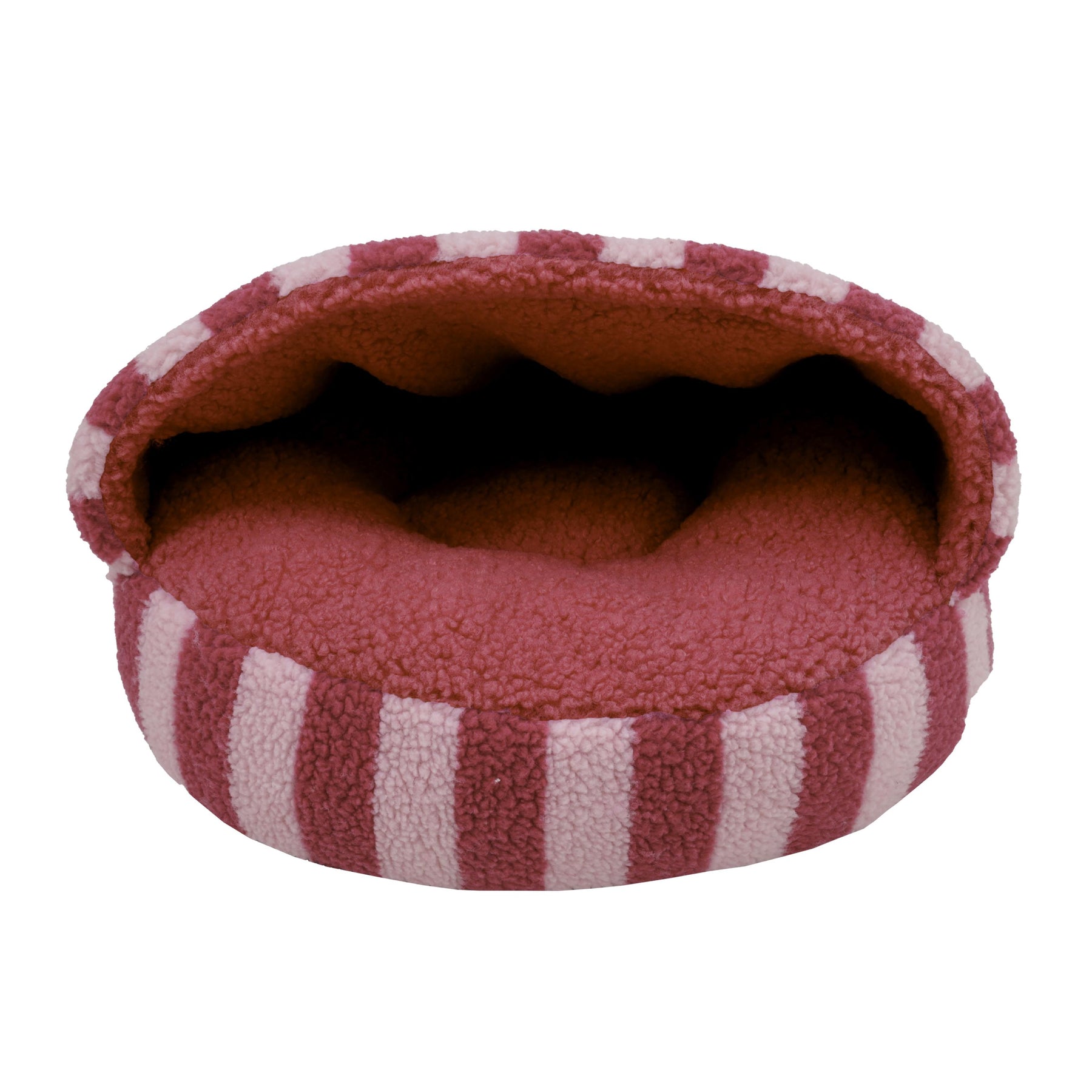 This eye-catching pink sherpa cat bed features playful dopamine-inspired stripes and a soft boucle inner that creates a cosy rest spot for your kitty. Perfect for every personality, cats who love to hide can curl up inside, while those who prefer lounging in the open can sit comfortably on top of the soft outer. Easy to care for, the bed is machine washable at 30 degrees and includes a non-slip base to keep it securely in place.