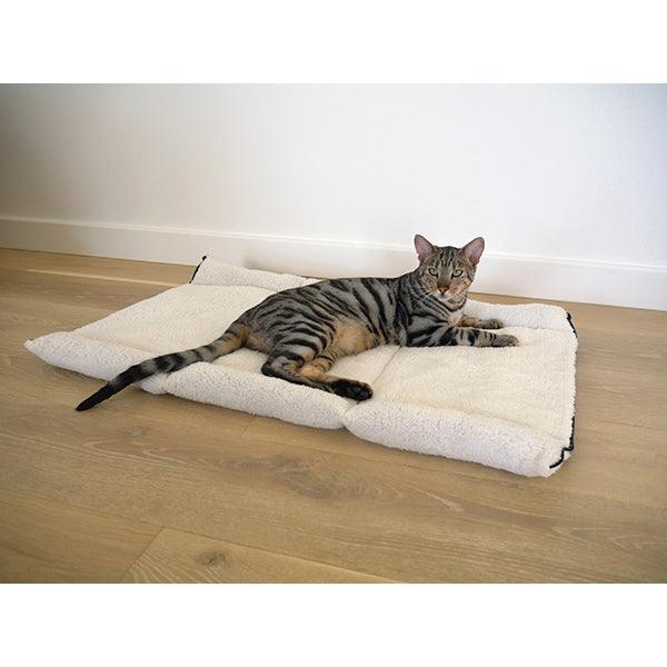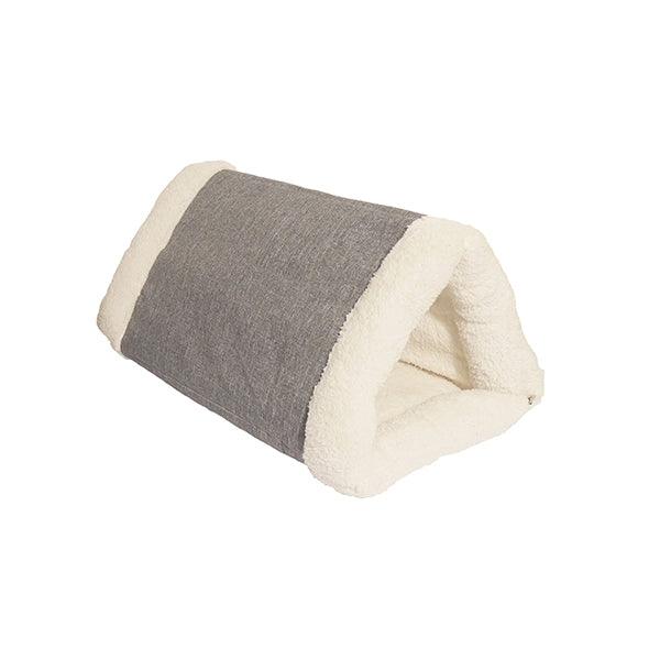 40 Winks 2 in 1 Cat Comfort Den combines style with comfort. Its super soft material will keep the cat warm and cosy. It effortlessly unfolds from a pyramid to a full size snuggly blanket with zip. Thick outside material keeps its shape. Hand wash only.