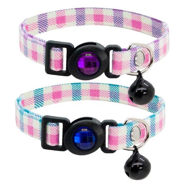 Adjustable fitting cat collar. Fish shaped safety clasp buckle with bell to alert wild birds!