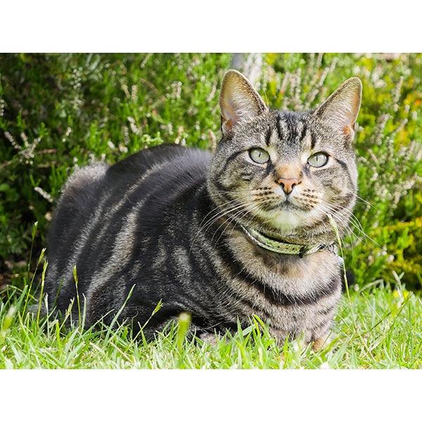 This quality, fashionable cat collar features a fashionable, shiny silver print and a loud removable bell. The quick release buckle made for safety is finished with our very own Rosewood paw print logo.