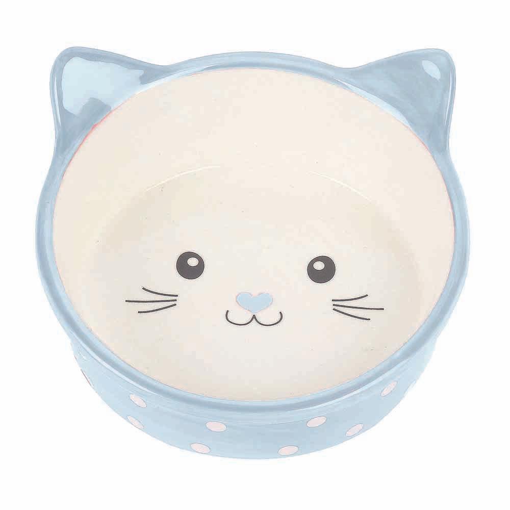 This Polka Cat Bowl from the Pet Platter range by Happy Pet is a beautiful ceramic dish perfect for all types of cats. The bowl is shaped like a cat and features a pretty cats face in it. The bowl is made from ceramic so it is easy to clean and is dishwasher safe. This bowl is available in one size only but comes in blue or pink.