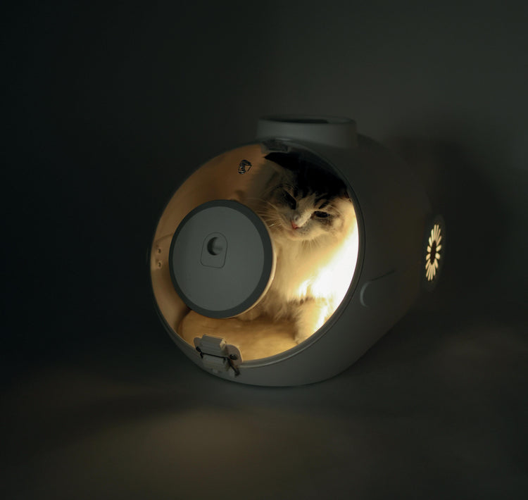 M-PETS SUBMARINE Carrier has a curved inner shape that allows the pet to roll freely inside and due to its design pets can enjoy the scenery while travelling. It includes a built-in 0.3L food container and soft padding that can make pets enjoy a comfortable journey.