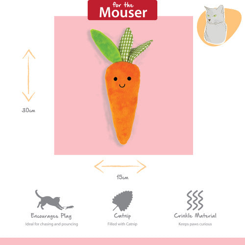Give your feline friend a dose of farm-fresh fun with the Tabby Patch Carrot Cat Kicker! Perfect for bunny-kicking, wrestling, or just snuggling, the Carrot Cat Kicker is part of our Tabby Patch collection—a line of garden-inspired toys designed to bring the outdoors in.