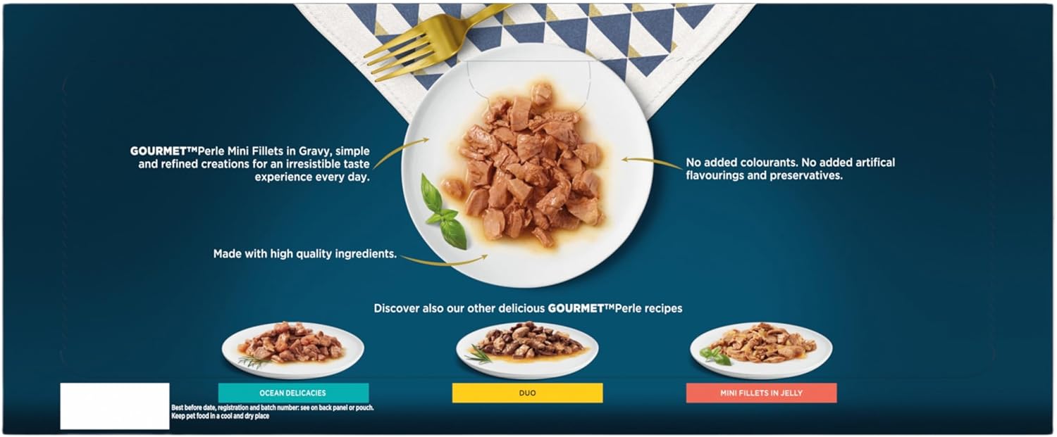 You enjoy feeding your cat delicious recipes made from simple and high quality ingredients. That is why GOURMET Perle has created Mini Fillets in Gravy: thoughtfully selected ingredients cooked with care for exquisite flavour, cut in fine mini fillets and served in a delicious gravy to delight the refined palate of your cat. All GOURMET Perle Mini Fillets in Gravy recipes are made with high quality ingredients and have no added colourants, no added artificial flavourings and no added artificial preservatives. Mini Fillets in Gravy from GOURMET Perle, simple and refined creations for an irresistible taste experience every day.