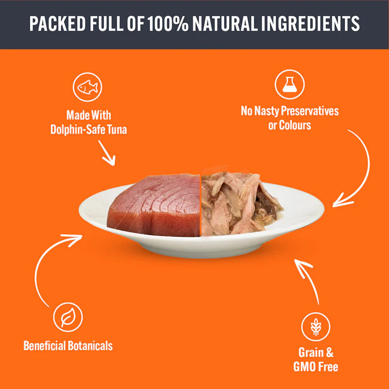 This 100% complete recipe, with delicious dolphin-friendly tuna flakes, includes freshly prepared ingredients and contains no artificial colours, flavours of preservatives.