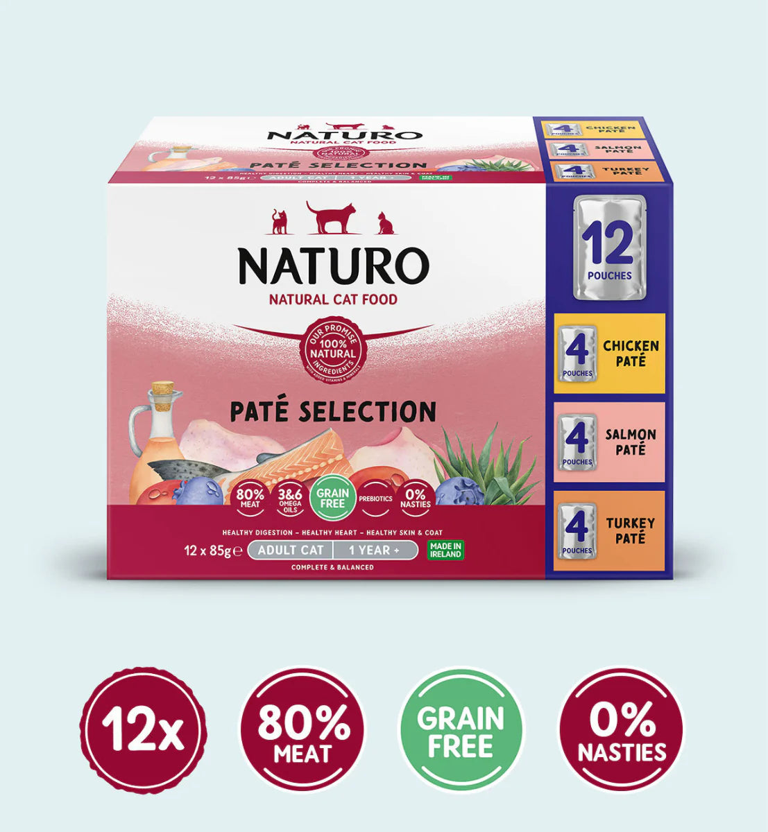 Our Grain Free Cat Food is the perfect complete meal for your Adult Cat. With 80% meat this is an excellence source of protein and B vitamins to support healthy muscles and energy delivery.