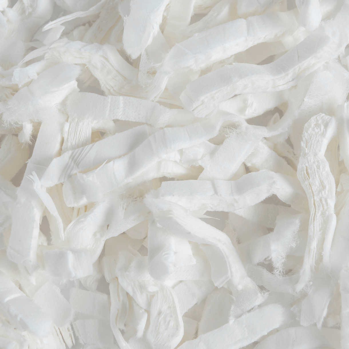 Our food grade paper raw material is available in short strip form in compressed bales. Each bale comprises 5.8 litres of compressed product (0.9kg as a guide).