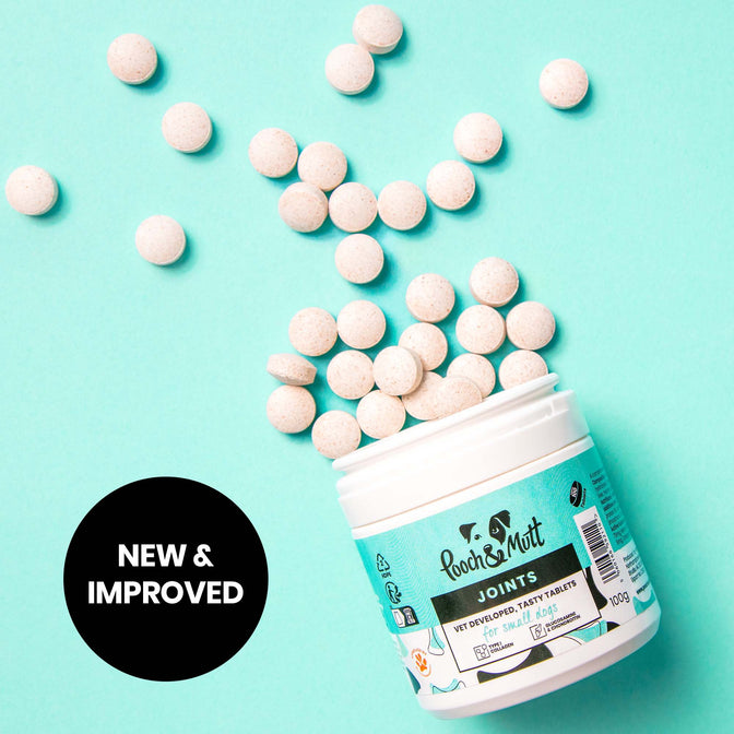 Here they are... our new and improved Joint Care Supplements for dogs! Containing a higher dosage of active ingredients than our predecessor, they may look small and unassuming, but they're MIGHTY in strength. They now also come in 2 sizes - Small Joint Pills for regular sized pooches, and Large Joint Pills for those bigger breeds, meaning all dogs can have a bite of the joint health action.