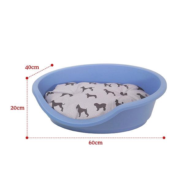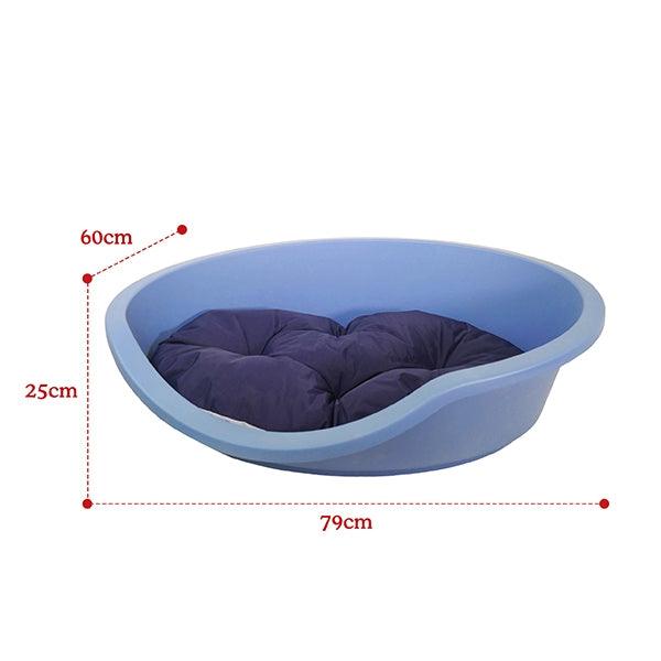 Eco line plastic dog beds are made form 100% recycled plastic. The smallest is made from the equivalent of 20 x 1L bottles, the medium from 40 bottles and the large from 70 bottles. The beds are hard-wearing with a wide rim, ventilated base and rubber feet - ideal for hard floors. Practical and attractive blue colour. The beds look great with Rosewood All seasons or Tough and Mucky mattresses which co-ordinate perfectly.