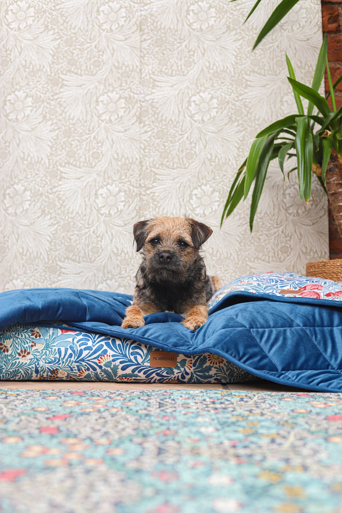 Our pet blanket is thick, double-sided and crafted from super-soft fabric with a complementary velvet reverse. Quilted with French stitching, it's perfect for covering pet beds or lying directly on the floor. It is packaged with a Morris & Co. ribbon and high-quality tag.