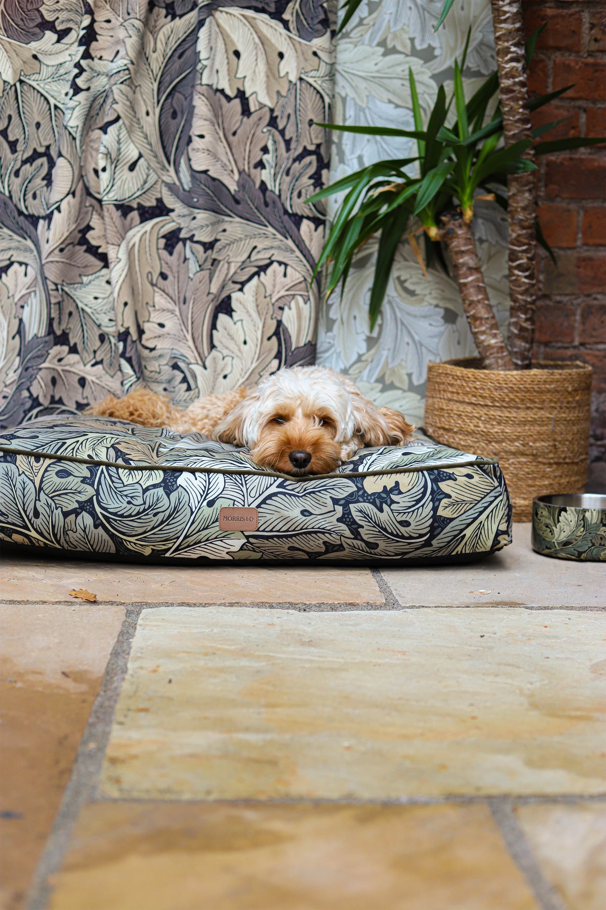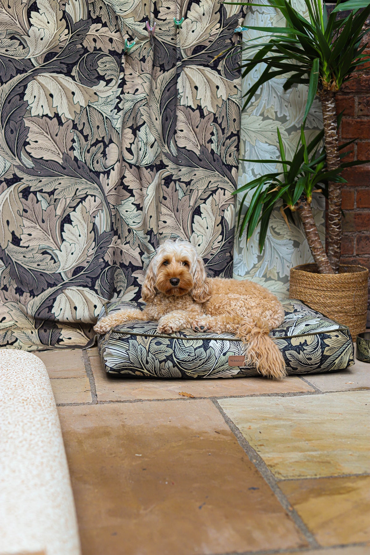 Our Acanthus Print pet mattress is crafted from a linen and cotton blend, thickly padded for extra comfort and support. This luxurious mattress is available in 2 sizes and features an anti-slip base. Thickly padded, luxurious pet mattress featuring an iconic William Morris print: Acanthus. Crafted from ultra soft linen and cotton blend , guaranteed to satisfy your dog's comfort needs.
