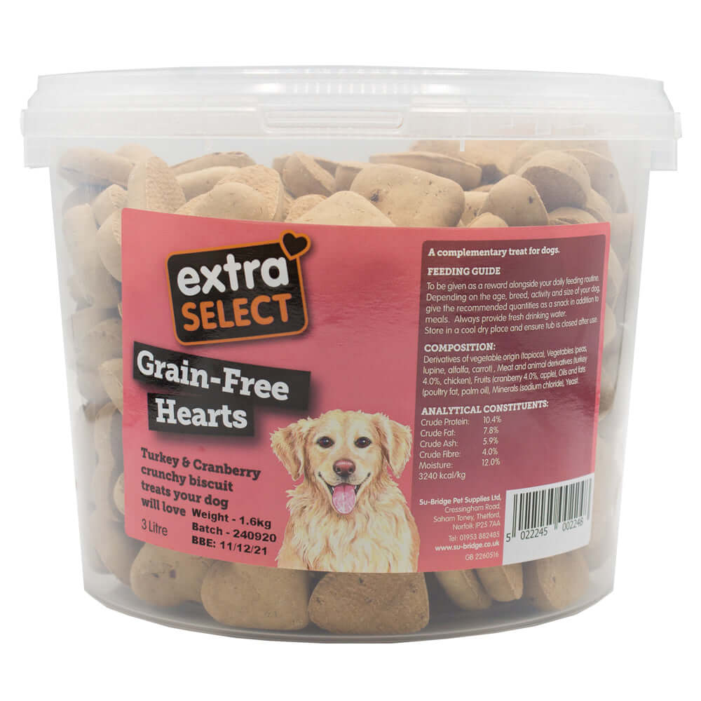 Your dog will like these Extra Select crunchy turkey and cranberry biscuit treats! Great to use whilst training or just as a reward to say 'I wuv you'
