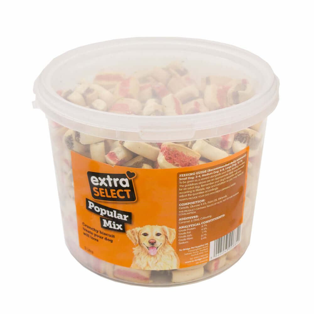 The Extra Select Popular range of biscuits is a fun mix of tasty dog snacks your pet will adore.