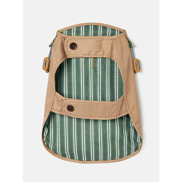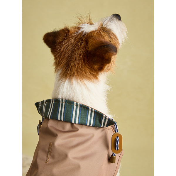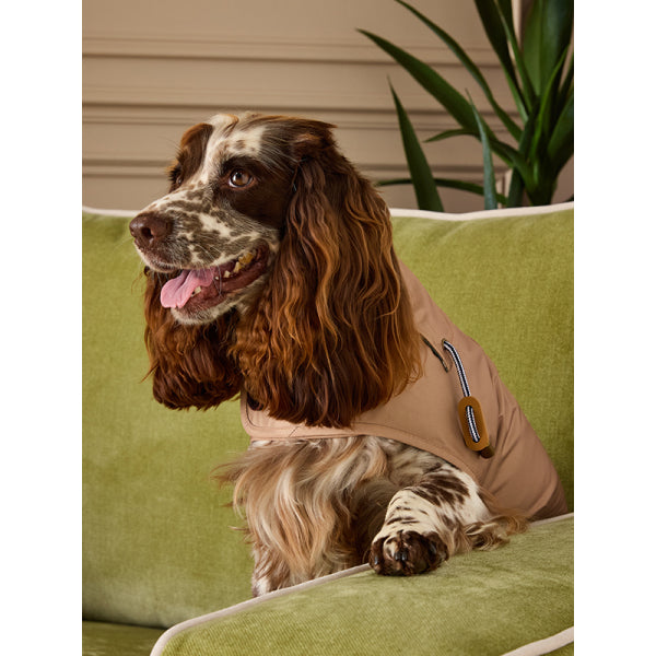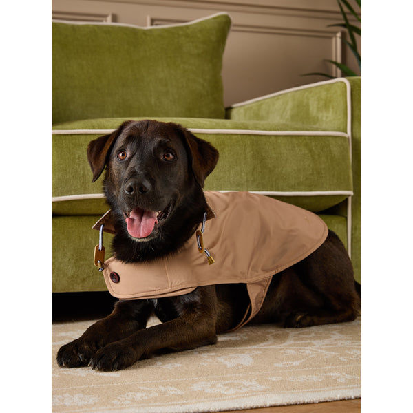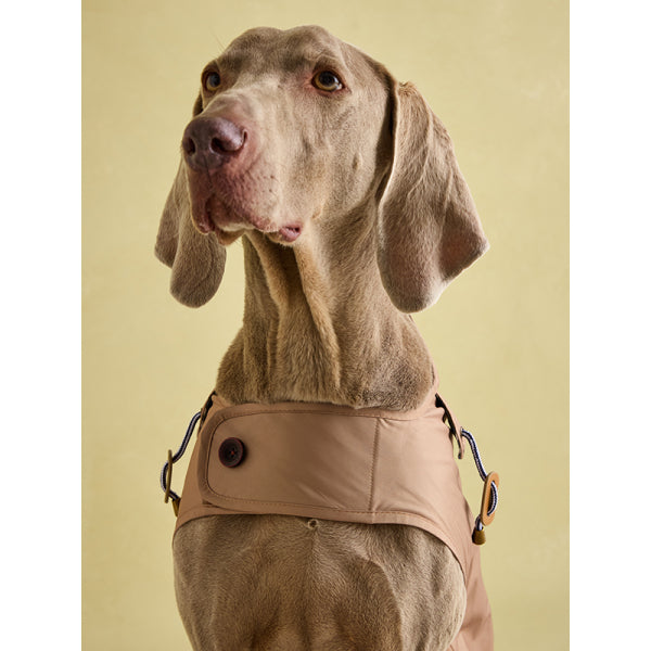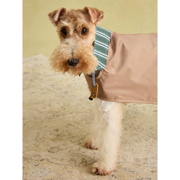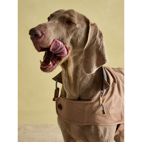 Now your four-legged friend can outwit the weather and enjoy drizzly dog walks in style, thanks to this new lightweight and water-resistant raincoat. In an eye-catching new design and with a sophisticated new colour palette, this is the dog coat, elevated. It's easy to get on and off, and has an opening at the back to secure a lead or harness. Lightweight Water-resistant Inner lining Adjustable Velcro fastening Machine washable at 30C Back opening for securing lead or harness New print Three sizes available