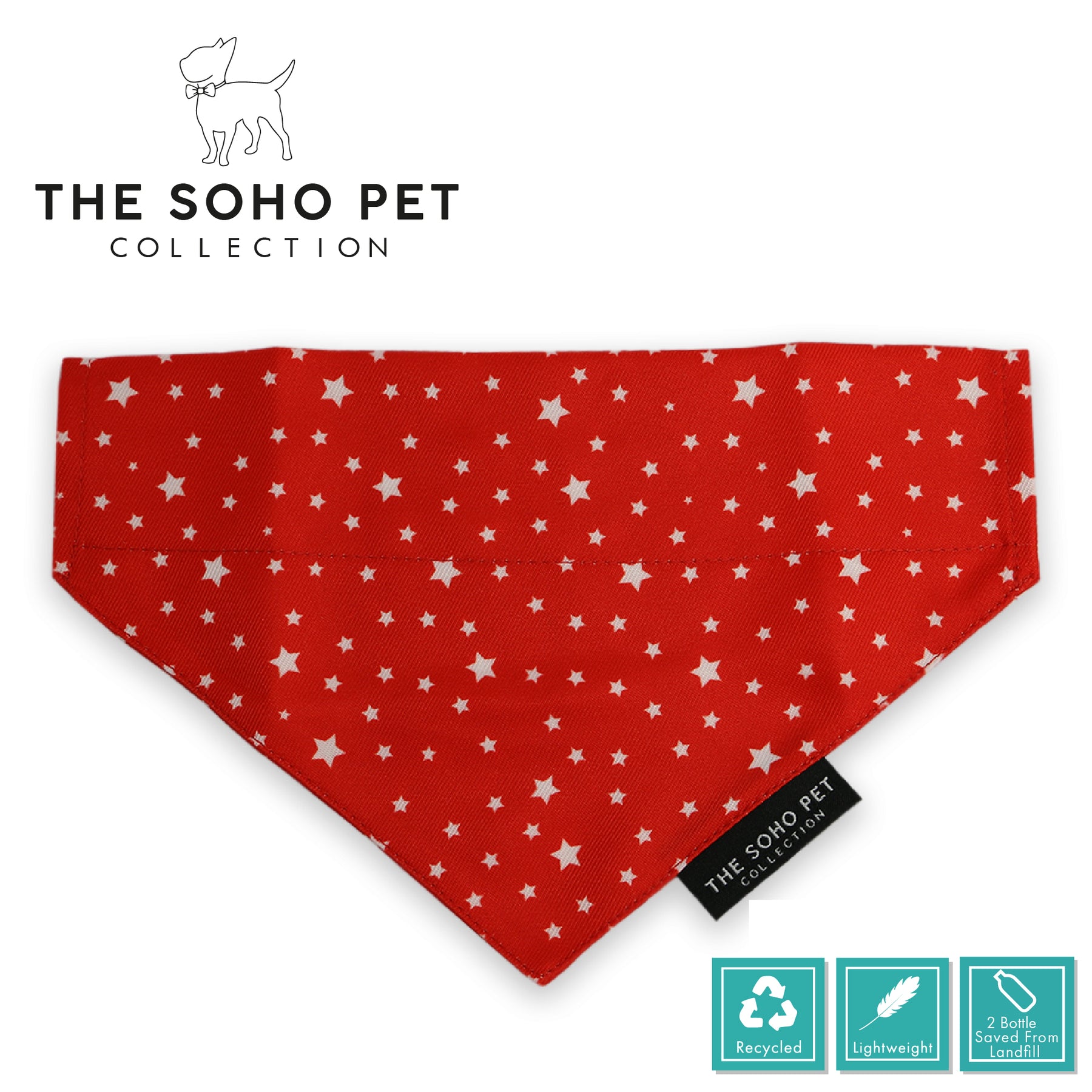 The bandanas are produced using 100% recycled fabrics they fit all of Ancols collars. These bandanas come in a pack of 2 matching the patterns of the reversible harnesses; Stripe & Leaf, Tartan & Star, Dalmatian & Zig Zag, Daisy & Polka, Dino & Ice Cream.