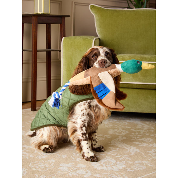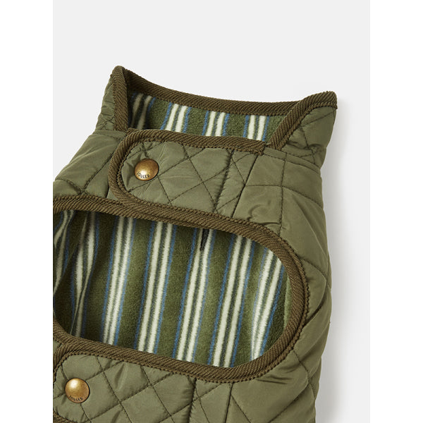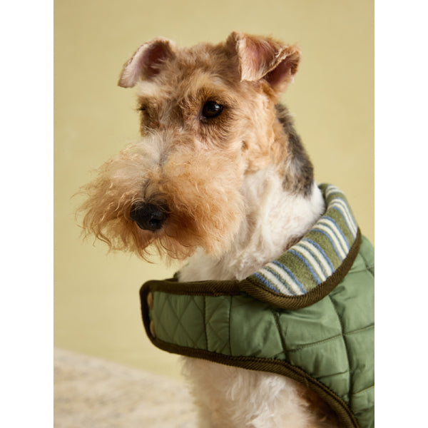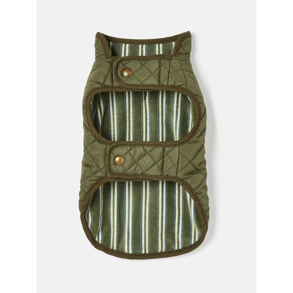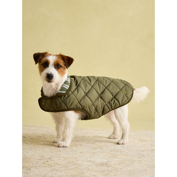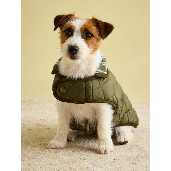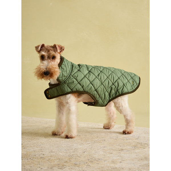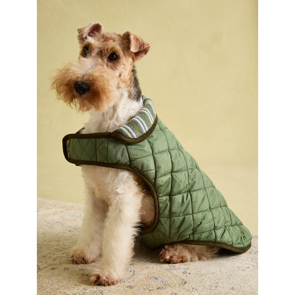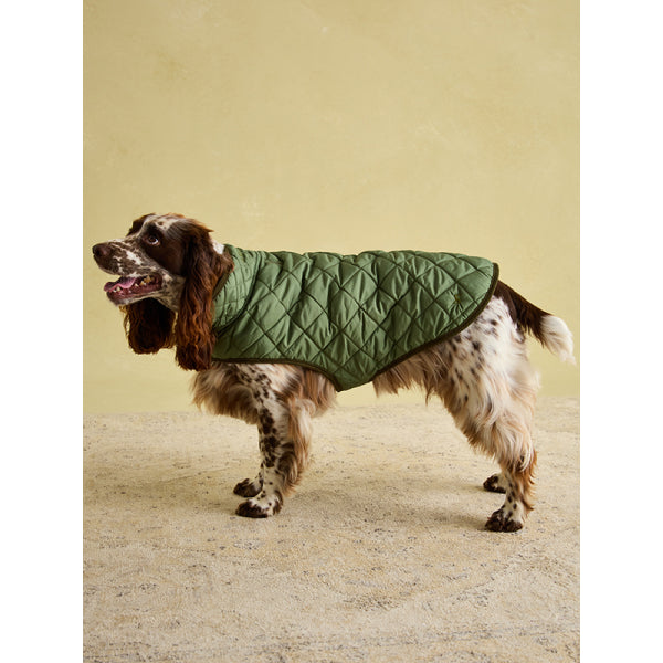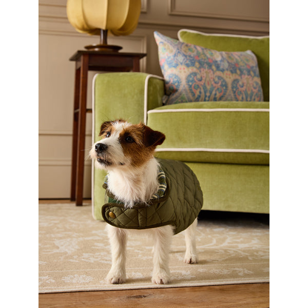 Treat your companion to a little countryside-inspired style this season. This diamond quilted dog coat will provide ultimate warmth in cold conditions thanks to it's lightweight padding and fleece lining. It's quick and easy to get on and off, thanks to adjustable Velcro fastenings and a lead can be secured through the back opening. It will almost have you crossing your fingers for crisp and cold winter mornings. Admiring glances and compliments guaranteed. Available in three sizes.