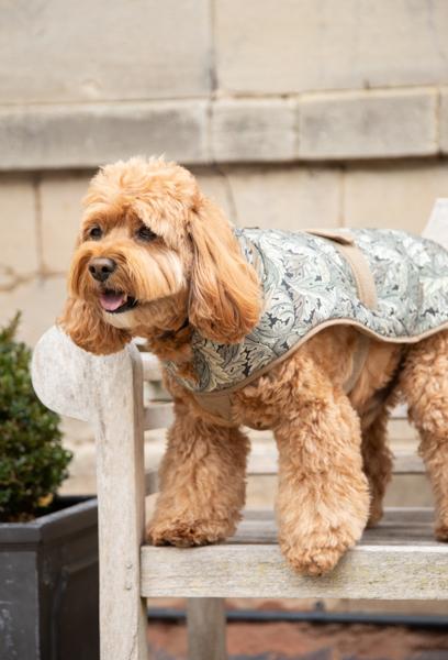 Part of the elegant Morris & Co pet collection, this water-resistant dog coat features the iconic Acanthus print – perfect for stylish strolls on damp days. Designed for comfort and practicality, it includes a soft, warming lining, adjustable Velcro fastening, and a convenient leash hole for easy walks in all weathers.