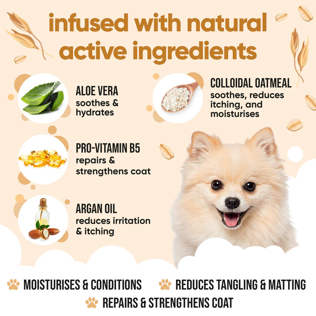 Embrace the natural goodness of oatmeal in this earthy, comforting scent. Ideal for dogs with dry or itchy skin, the Oatmeal conditioner offers a deeply moisturizing and soothing treatment, leaving your dog's coat silky and their skin nourished.