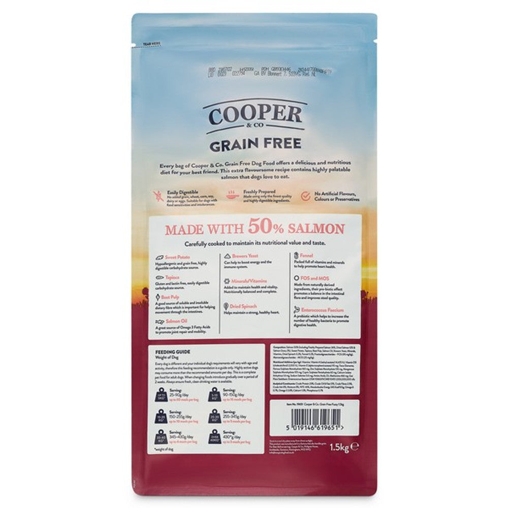 Simple, wholesome recipes! We developed these grain free recipes using only the finest quality ingredients so that our dog Cooper could lead a happy, healthy life. We limit the distribution of Cooper & Co to give you all the benefits of an own brand with additional support schemes! We gently cook our fresh meat at 90 degrees which preserves the protein and allows the dog to absorb more of the vital nutrients. Alternative Carbohydrates - Our recipes use complex carbohydrates like sweet potato which are high in vitamins and provide a slower release of energy Easily Digestible - Free from grain, wheat, corn, soy, dairy and eggs. Suitable for dogs with food sensitivities and intolerances. Nothing Artificial - We don't need to include additives and flavourings when our foods are so naturally tasty.