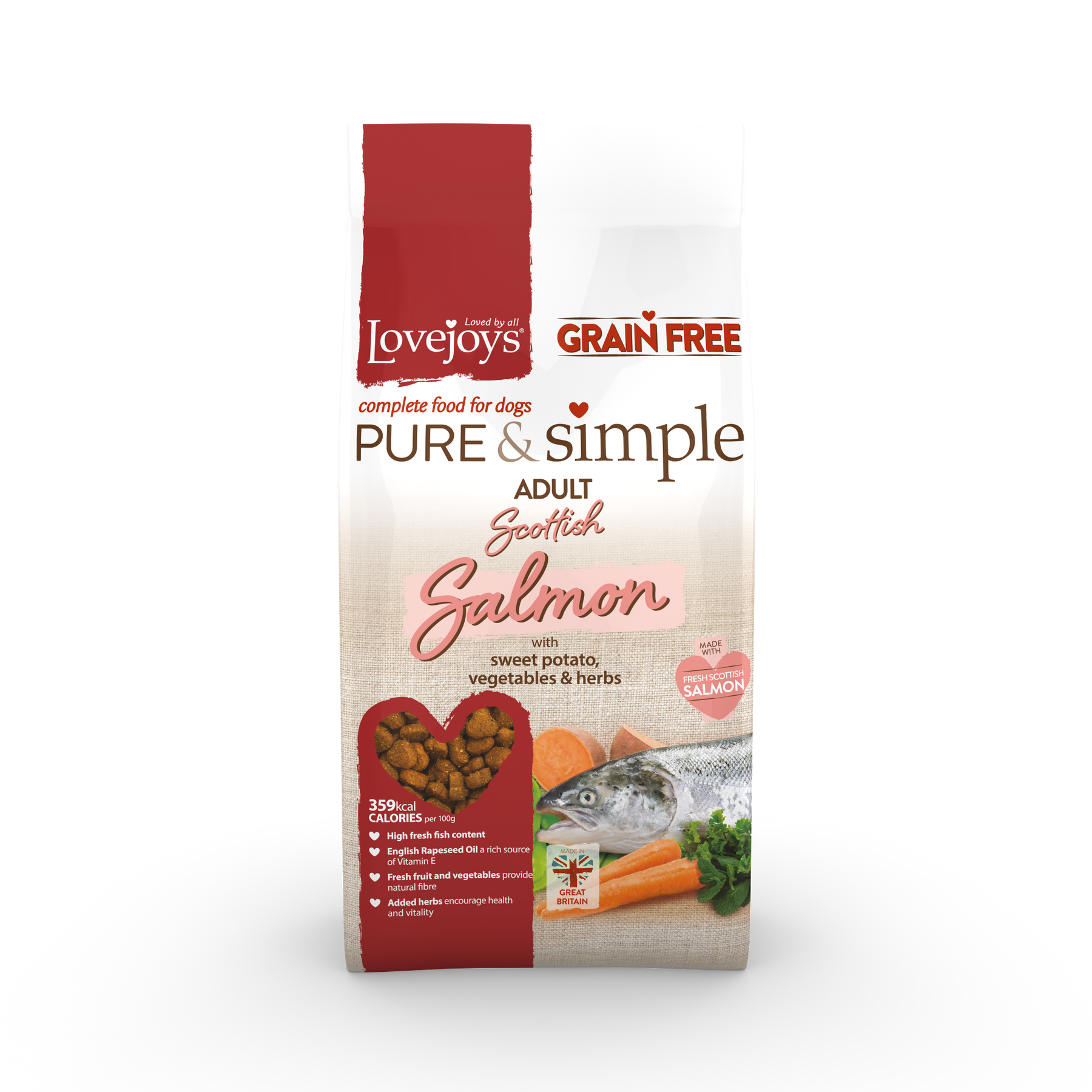 Lovejoys Pure & Simple Grain Free with Scottish Salmon is a complete dry food for dogs that prefer a grain free diet.