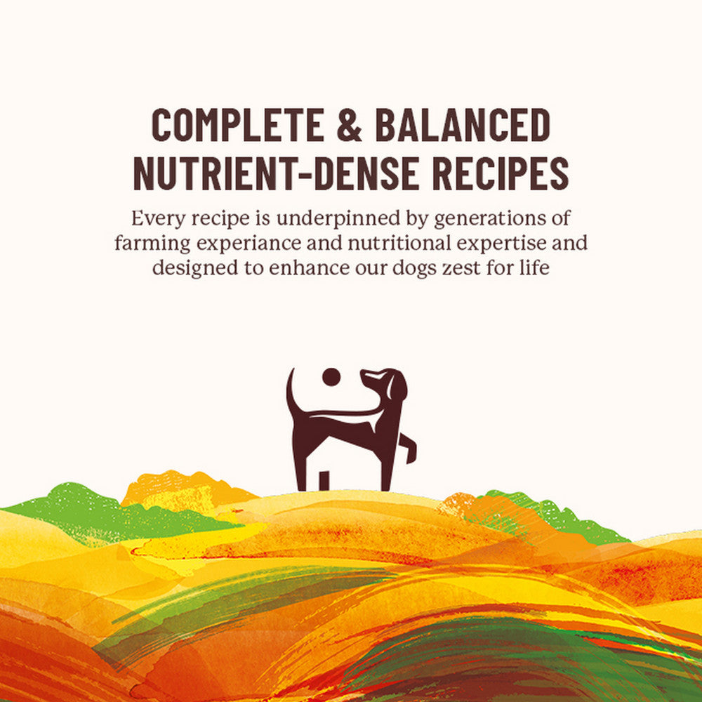 Our Chicken with Thyme & Root Vegetable recipe includes freshly prepared chicken, thyme, peas, potato, parsnip, carrot, and a tasty gravy. Added prebiotics & paraprobiotics help to support healthy gut function and glucosamine, chondroitin & MSM support joint health. Our Chicken with Thyme & Root Vegetable recipe contains citrus extract to help support dental health and is suitable for small adult dogs of every age, including seniors. With recyclable packaging and our handy reseal, the last bowl will be as fresh as the first, delivering holistic vitality from farm to tail.