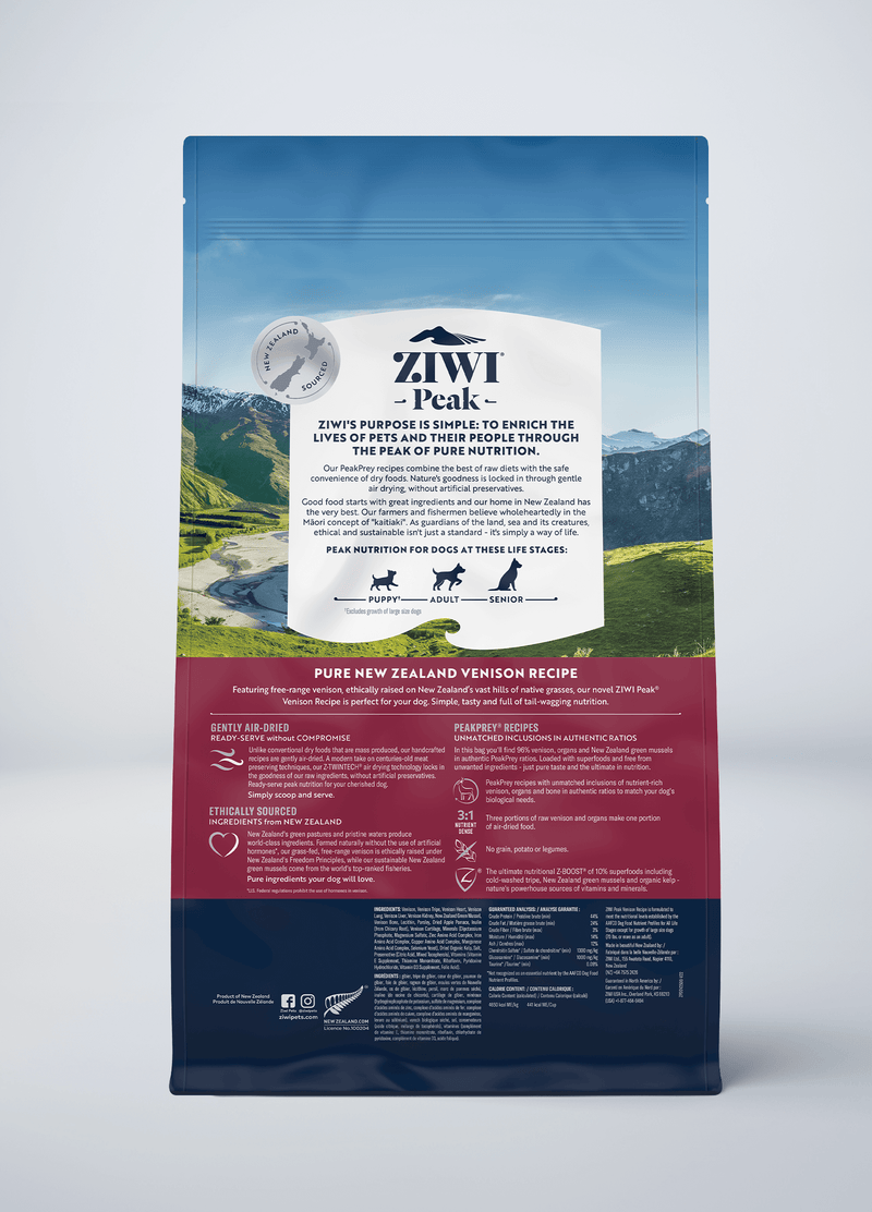 As a novel single protein food, ZIWI Peak® Venison is ideal for dogs with sensitive stomachs. With a recipe like this, nothing will hold you and your companion back from life's adventures!