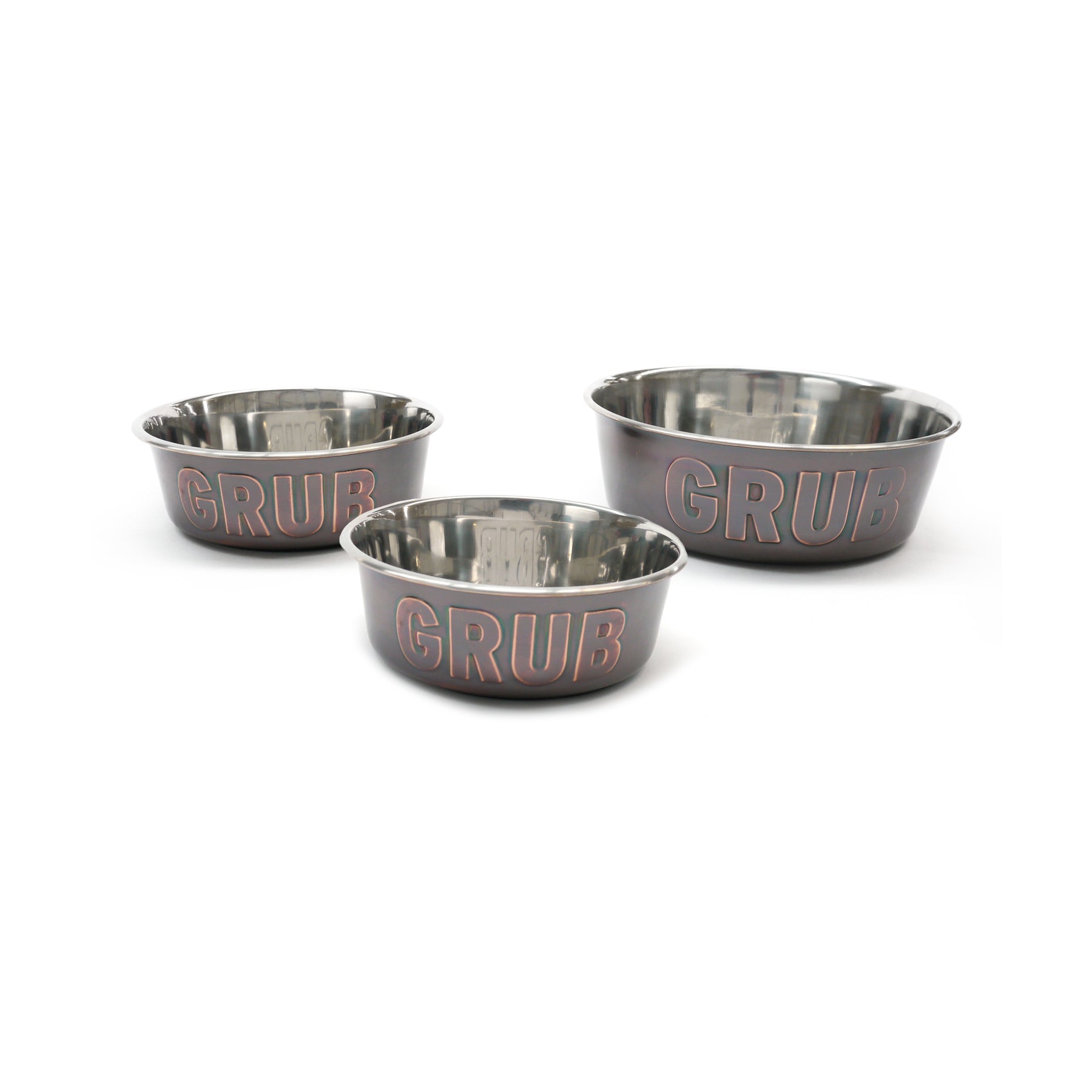 Deluxe bowls made from top grade stainless-steel and a decorative outer layer design. Non-slip rubber base. Available in three sizes. Dishwasher safe