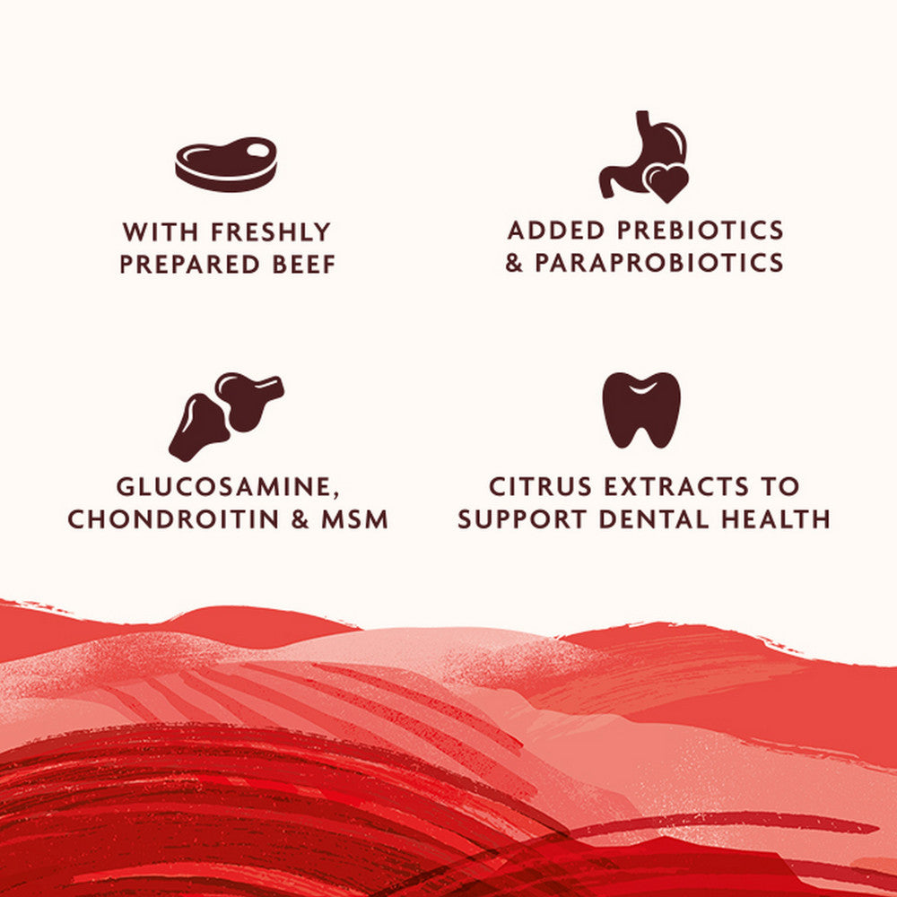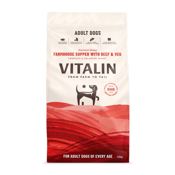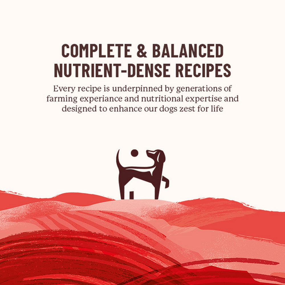 Our Farmhouse Supper recipe includes freshly prepared beef, potato, peas, carrot, parsnip, and a tasty gravy. Added prebiotics & paraprobiotics help to support healthy gut function and glucosamine, chondroitin & MSM support joint health. Our Farmhouse Supper recipe contains citrus extract to help support dental health and is suitable for adult dogs of every age, including seniors. With recyclable packaging and our handy reseal, the last bowl will be as fresh as the first, delivering holistic vitality from farm to tail.