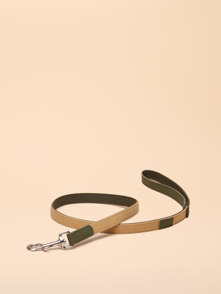 Crafted from built-to-last leather and webbing this comfortable dog lead is finished with our usual attention to detail. Durable and dapper, it will make sure your four-legged friend can approach every day in style. The brushed metal buckle adds a premium touch as does the webbing back. Matching collar available in three sizes. Available in tan and khaki. Premium metal hardware. Crafted from durable leather. Webbing detail.