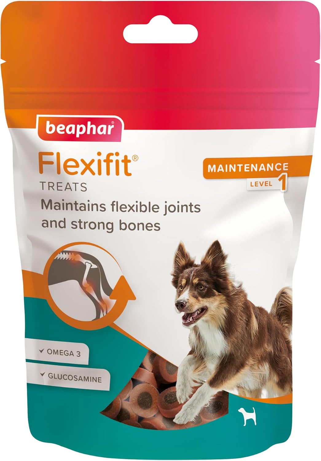 Beaphar Flexifit® Treats are a delicious way to support and maintain your dog’s joint function. The treats contain Glucosamine, Omega 3, Vitamin C and Calcium to help maintain flexible joints, strong bones and healthy muscles. Beaphar Flexifit® Treats for dogs are formulated for adult dogs with no apparent joint issues to help maintain healthy joints and are an ideal supplement for active, working and elderly dogs.