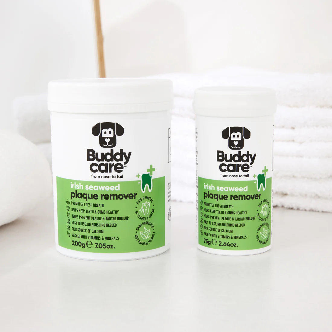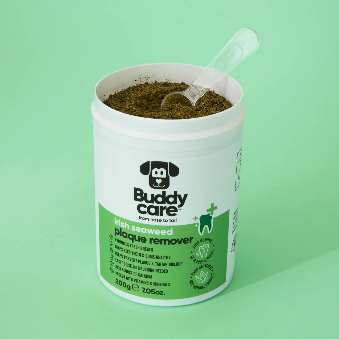 Give your pup the gift of a cleaner, healthier smile with Buddycare Irish Seaweed Plaque Remover. This natural supplement is packed with the goodness of hand-harvested Irish seaweed, helping to prevent plaque and tartar buildup while supporting healthy teeth and gums—all without the need for brushing!